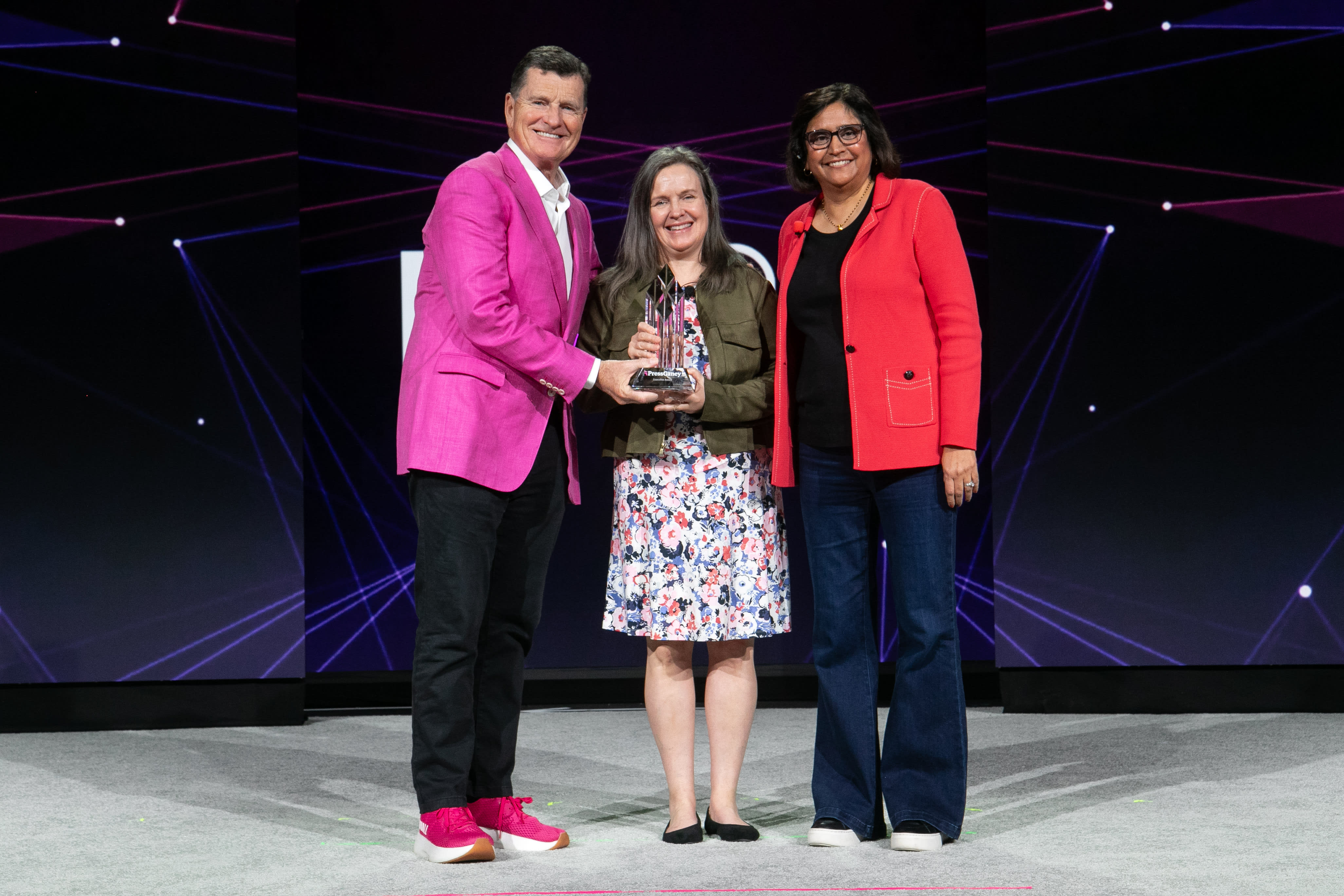 Chief Quality Officer Jennifer Bayersdorfer, middle, accepts the HX26 High Reliability Organization Foundation Award on behalf of Providence for its strong safety culture and commitment to top-quality patient care. [Photo courtesy of Press Ganey]