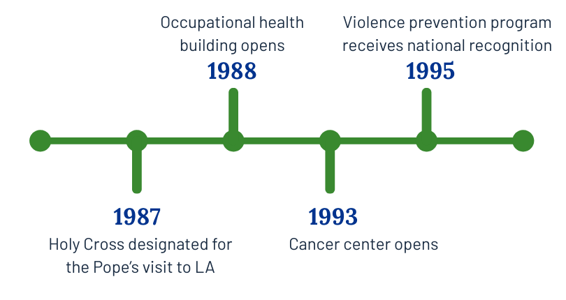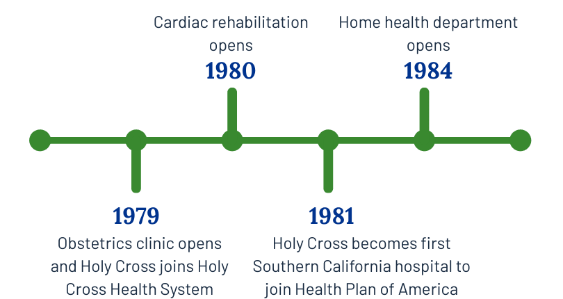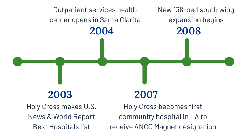 Today, Providence Holy Cross Medical Center is widely known for its compassionate care and commitment to excellence. Nationally recognized for clinical performance and patient care, it ranks among the top one percent of hospitals in the nation and has been named a Healthgrades Top 50 Hospital for seven consecutive years. With Magnet® status for nursing excellence and designation as one of only two 24/7 trauma centers in the San Fernando Valley, Holy Cross continues to serve the community with world-class care.