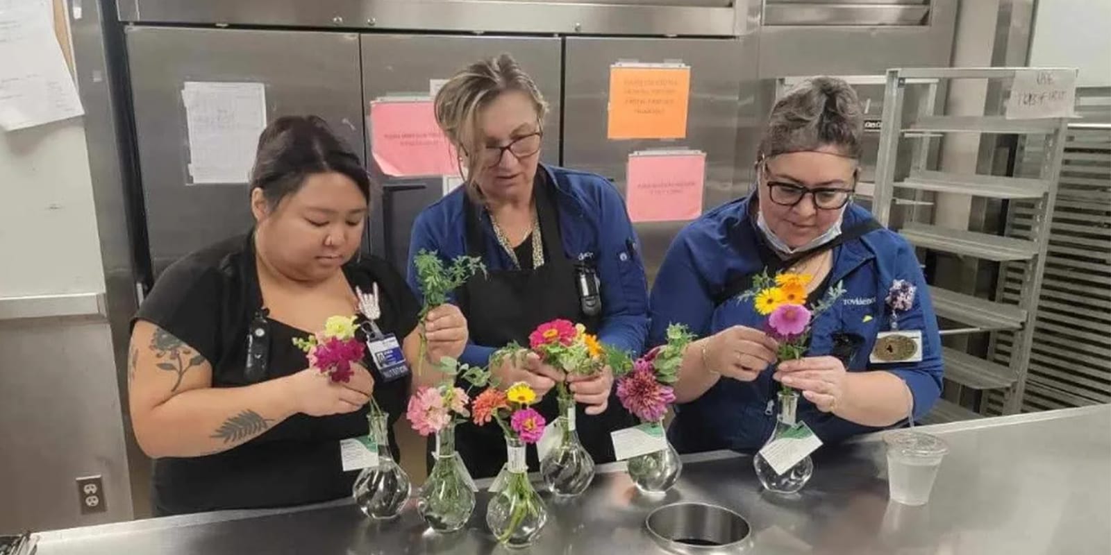 Today, thanks to the leadership of Michael Tjaden, senior director of Nutrition Services, the tradition has returned with a new name and a renewed purpose. The Compassion Care Floral Gift program now sources flowers from Providence Portland Medical Center's own community garden—grown, harvested, and arranged by caregivers who believe in the healing power of beauty and connection.