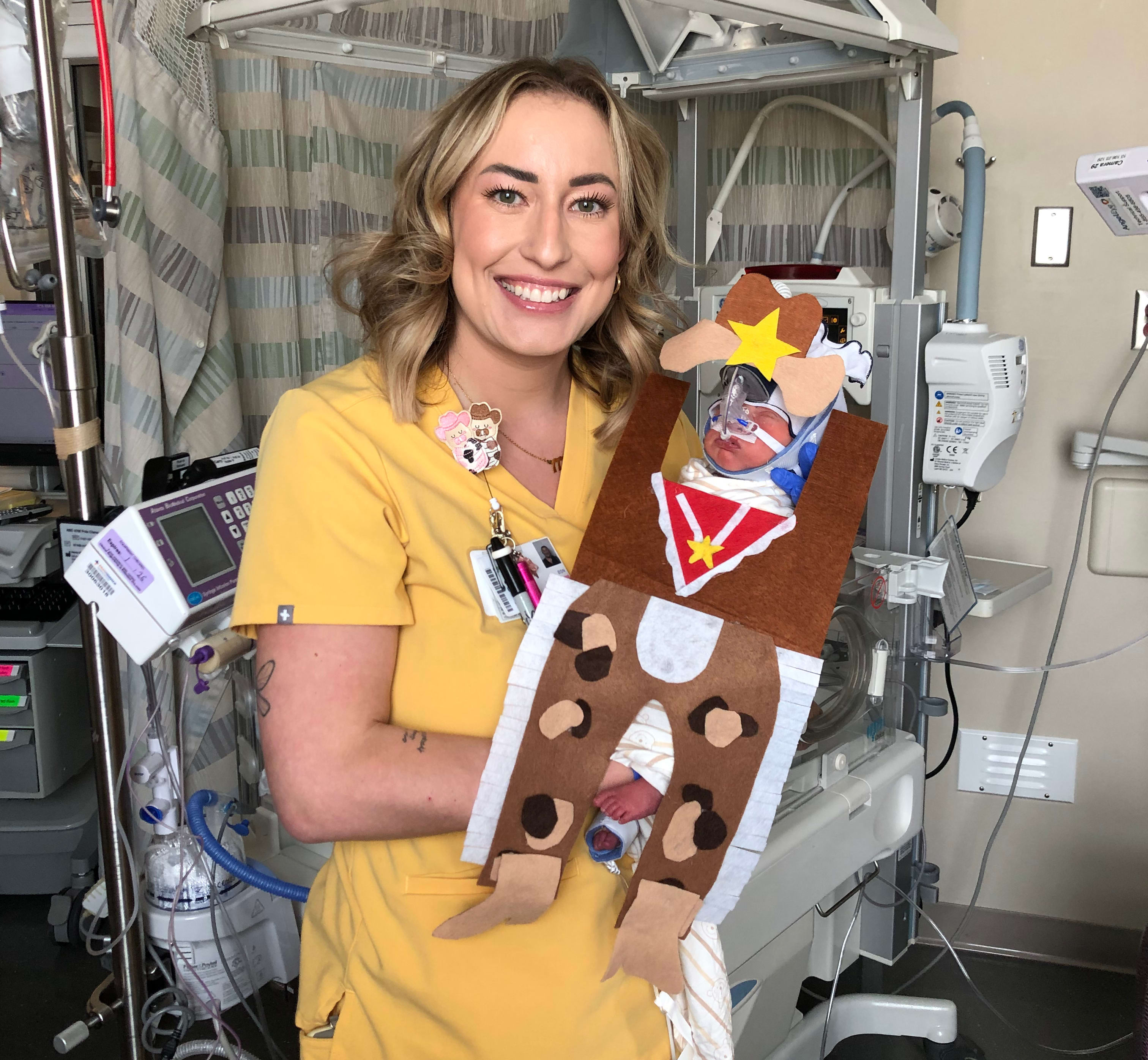 Each year, they handcraft dozens of costumes for NICU babies for the Halloween holiday. Inspired by NICU units across the country and fueled by a love of crafting, nurses Chandy T. and Claire F. championed the program and brought the celebration to their own unit.
